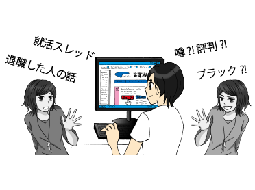 企業研究しようとインターネットを見ていたら、 就活スレッド、噂、評判、口コミ、退職した人の話… 「ブラック企業」なんて書き込みを見てしまい、 なんてことのないように。 |