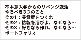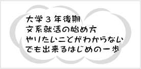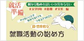 何が出来ていて、何が足りないのか、まずは就職活動力をチェック! 今さら、どうせ、手遅れはありません。今が始めるべき時なのです。 不足が見えたら、焦らずに、できることから一つずつ始めましょう。 |