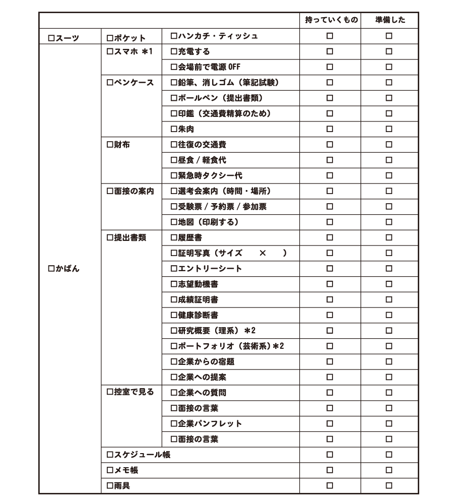 面接に呼ばれた時の持ち物リスト 面接の案内等を見ながら |