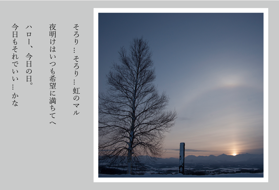 (厳冬の朝_ハロと幻日と太陽柱)