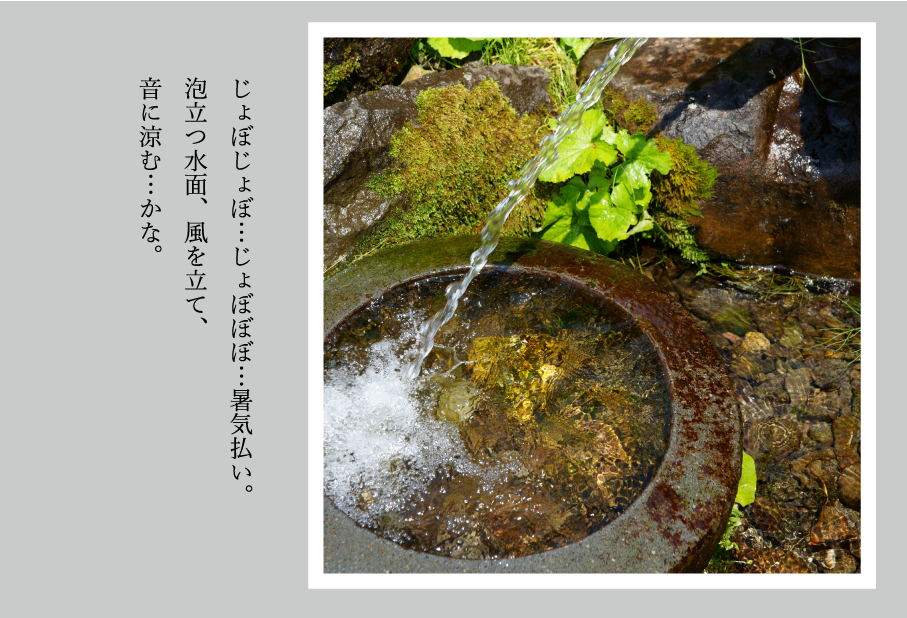 じょぼじょぼ…じょぼぼぼ…暑気払い。泡立つ水面、風を立て