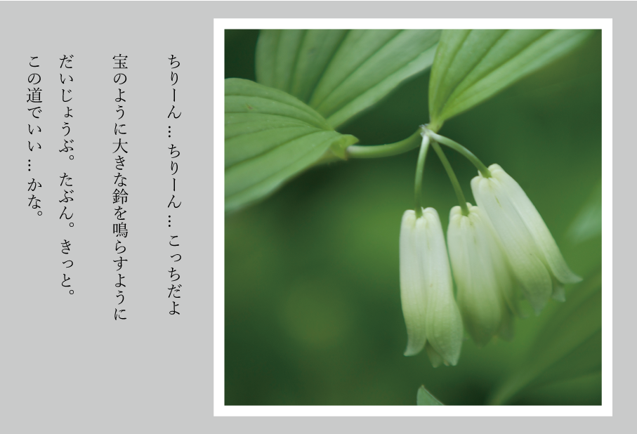 ちりーん...ちりーん...こっちだよ 宝のように大きな鈴を鳴らすように だいじょうぶ。たぶん。きっと。