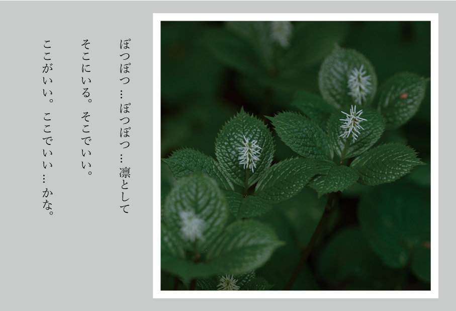 ぽつぽつ...ぽつぽつ...凛として そこにいる。そこでいい。ここがいい。