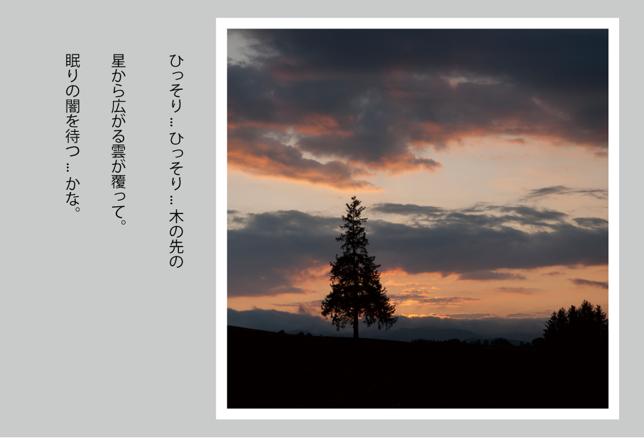 ひっそり...ひっそり...木の先の 星から広がる雲が覆って。