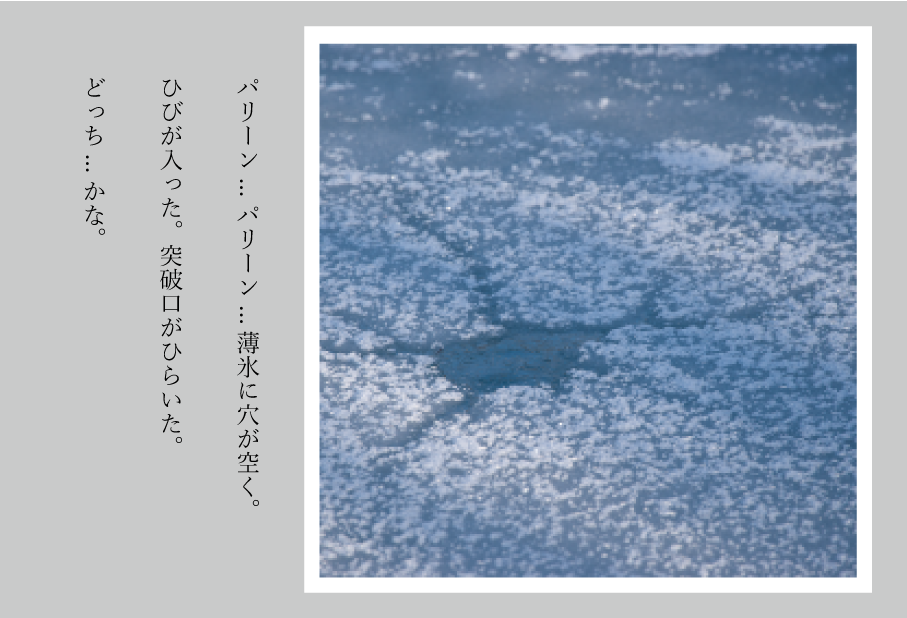 パリーン...パリーン...薄氷に穴が空く。 ひびが入った。突破口がひらいた。