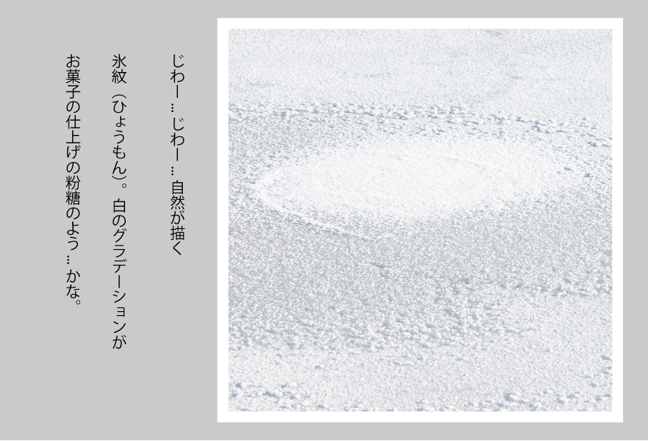 じわー...じわー...自然が描く 氷紋(ひょうもん)。白のグラデーションが