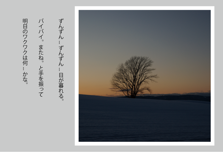 ずんずん...ずんずん...日が暮れる。 バイバイ。またね。と手を振って