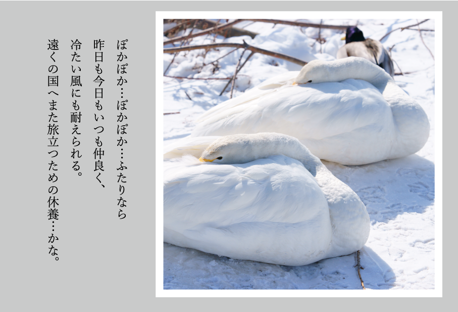 ぽかぽか…ぽかぽか…ふたりなら 昨日も今日もいつも仲良く、 冷たい風にも耐えられる。