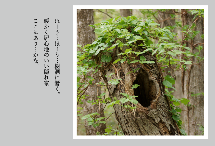 ほーう…ほーう…樹洞に響く。 暖かく居心地のいい隠れ家。