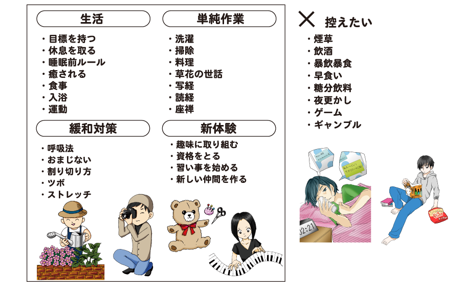 セルフマネジメントとして、 落ち込んだ気持ちから離れる自分なりの方法を見つけましょう。 |